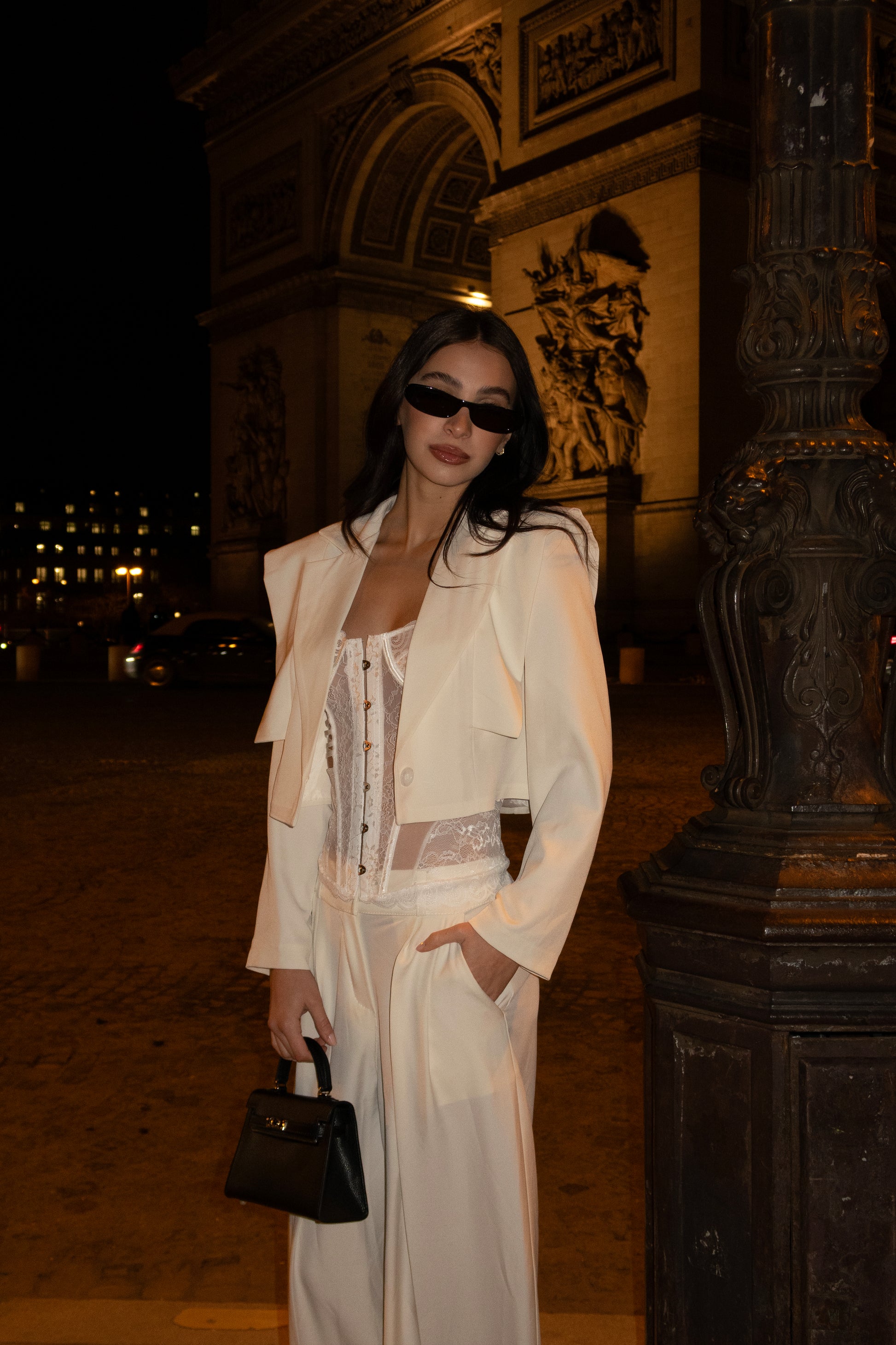Coordinato composto da giacca coro e pantalone vestibilita flare, con inserti in camicia.